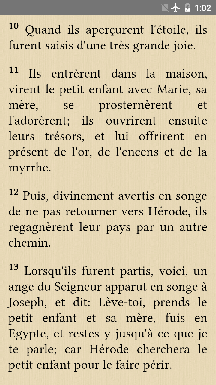 Très bonne appli Jaime surtout le widget. Maintenant ce serait bien qu'on puisse surligner des versets, et que la recherche des textes soit plus simple, qu'il y ait différentes options de lecture et pourquoi pas des guides de lecture. Toutefois, un très grand merci aux concepteurs